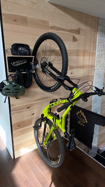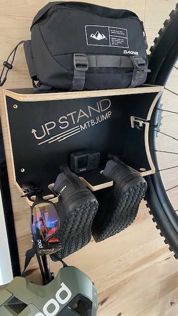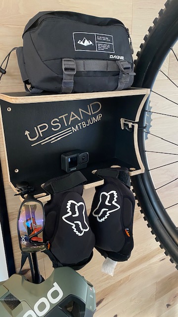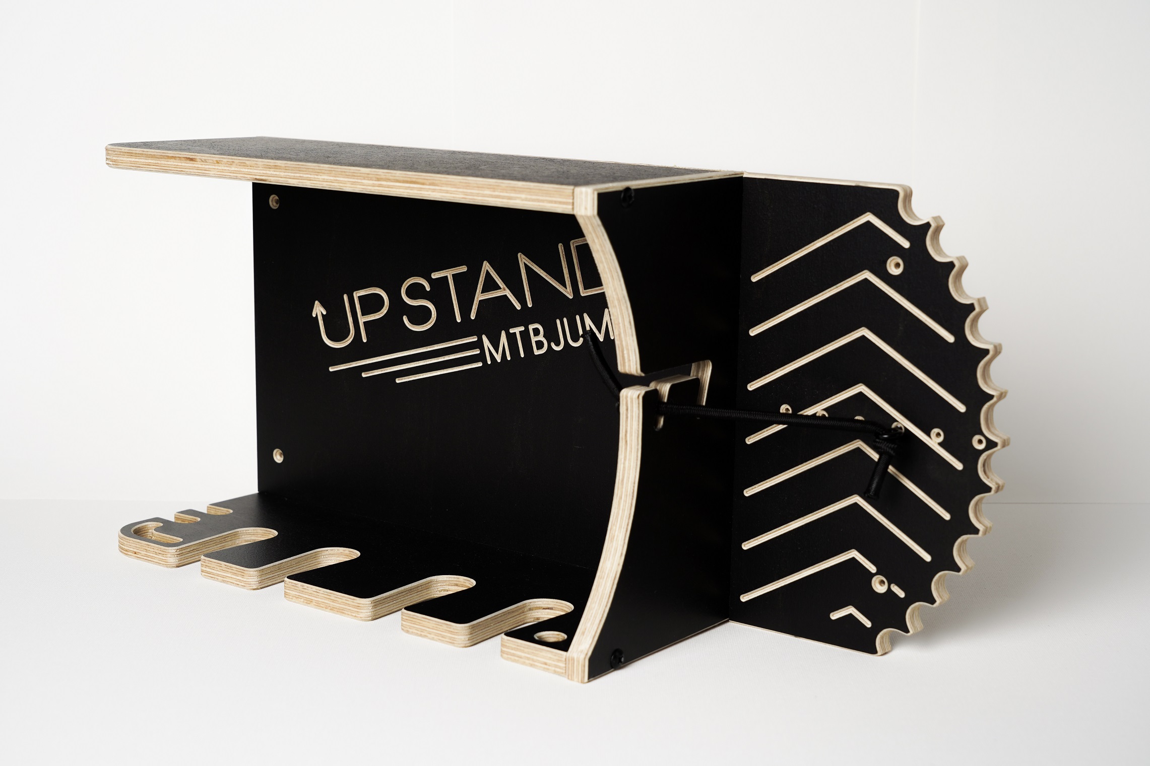 The UpStand becomes your bike station, you can hang your accessories afterwards to store them or dry them. Our UpStand is made of 1/2 inch cherry,